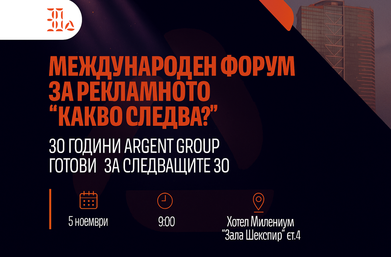 На 5 ноември 2025 г., в Гранд Хотел Милениум, София, Argent Group ще отбележи своята 30-годишнина с международен форум под надслов „Готови за следващите 30“.